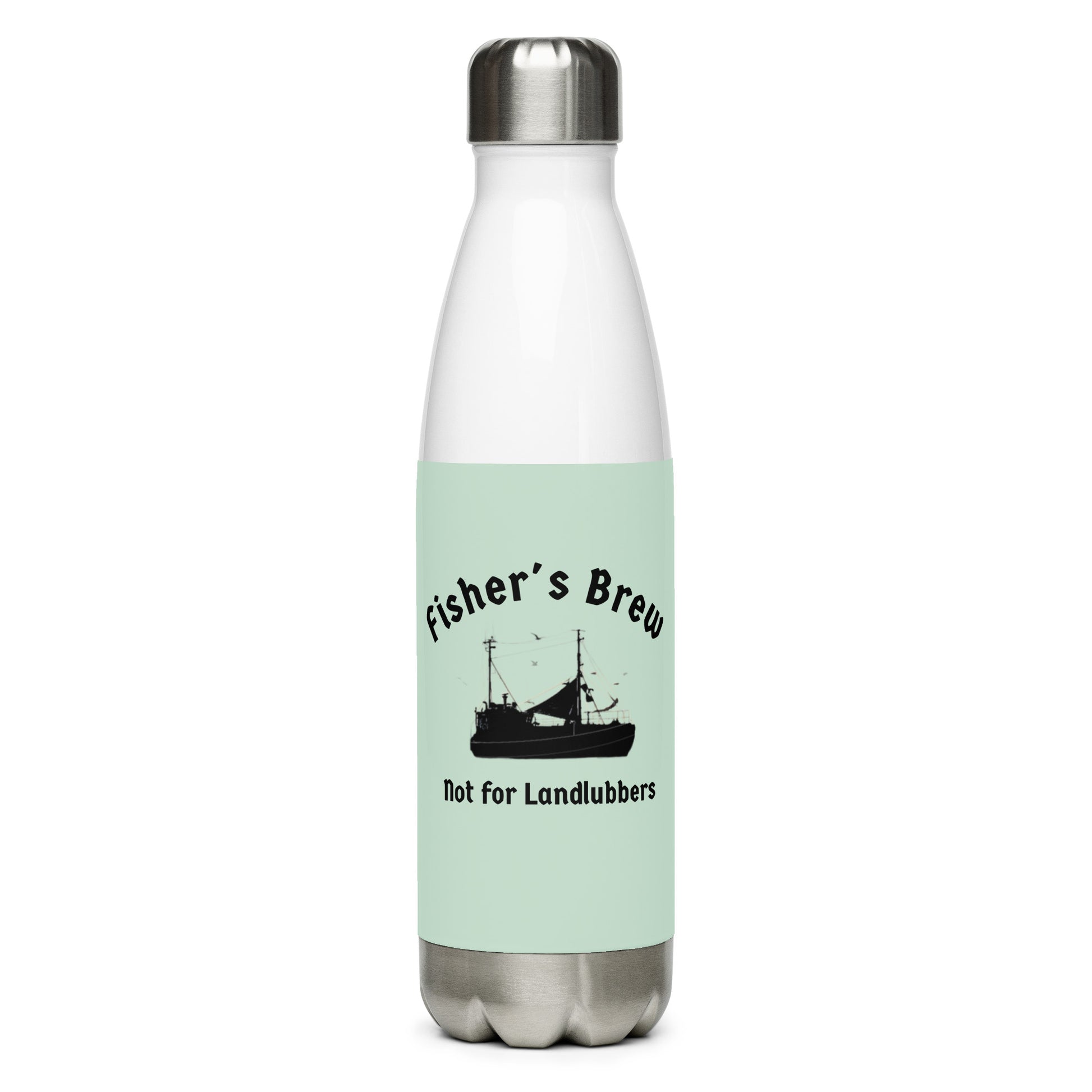 This stylish stainless steel bottle is perfect on a crispy morning fishing trip. It keeps your coffee, hot chocolate or soup hot. It’s also good on hot days to keep your drink cold. An old fishing boat and fun text.