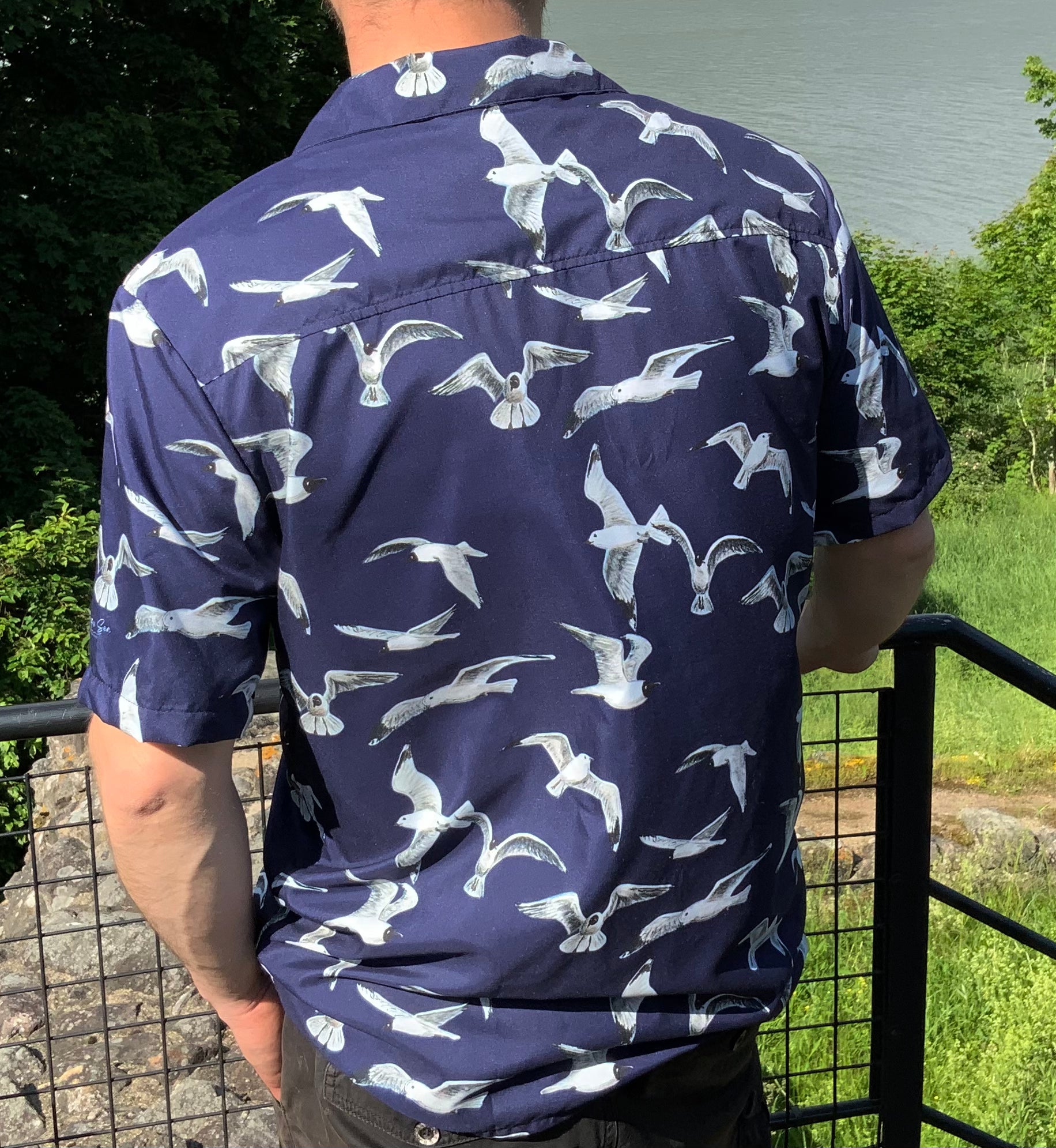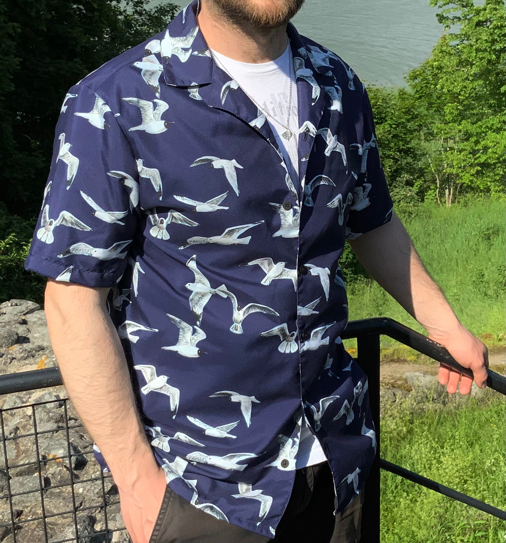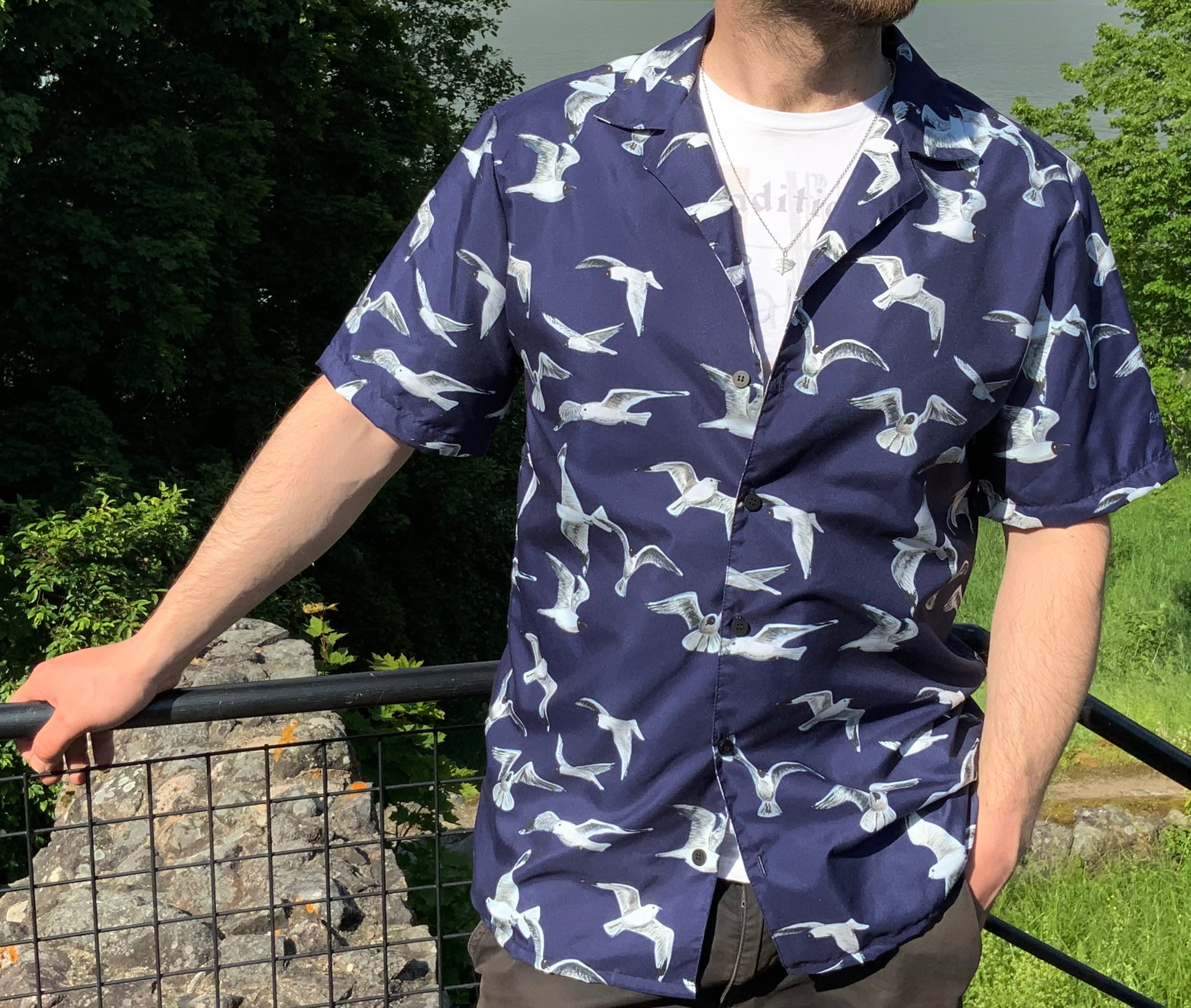 This hawaii style shirt with seagulls screams relaxed summer vibes. The seagull design is handpainted, and the soft fabric feels cool even on hot summer days. Perfect for relaxed coastal style. The unisex fit is very loose so ordering one size down might be a good idea; check the size chart.