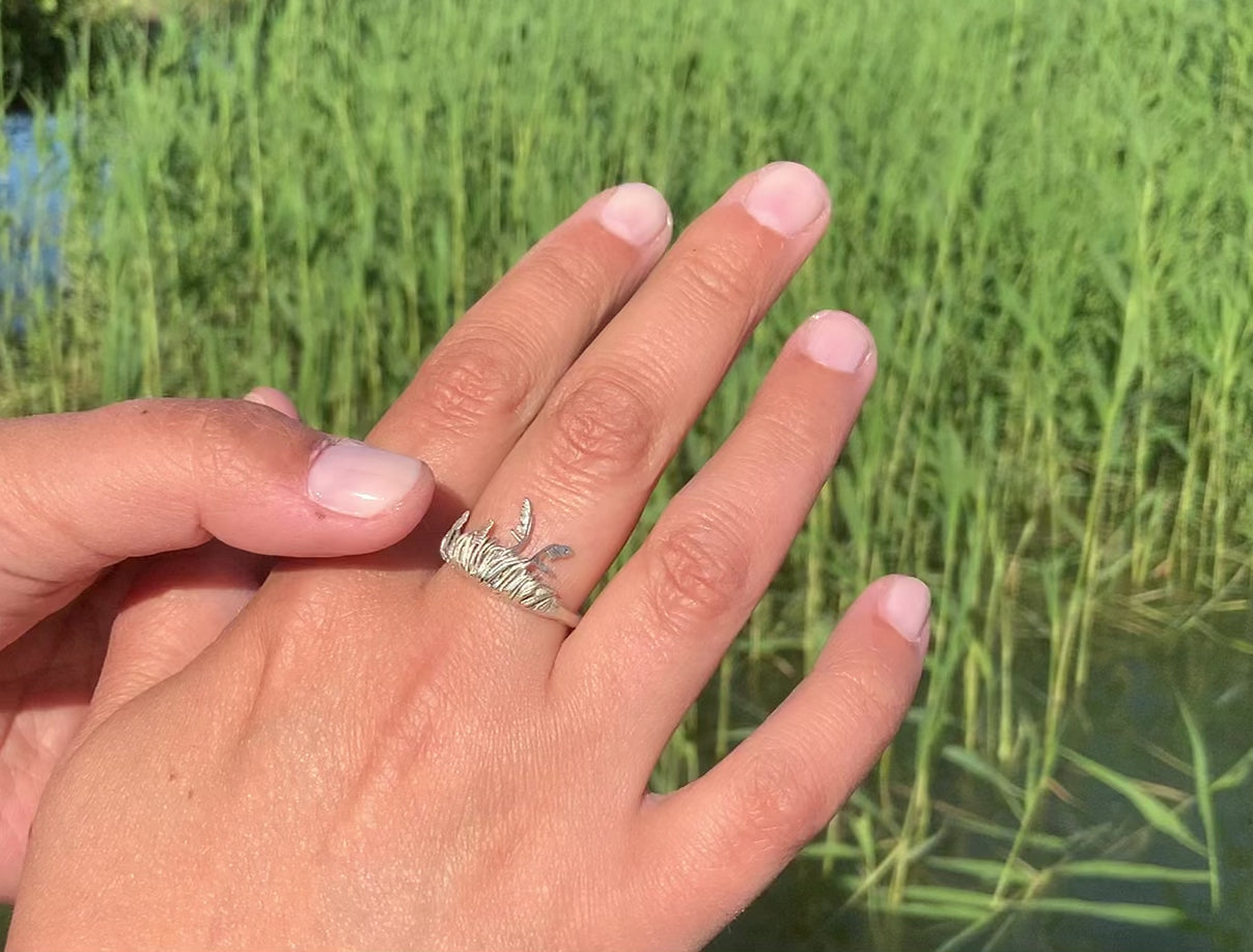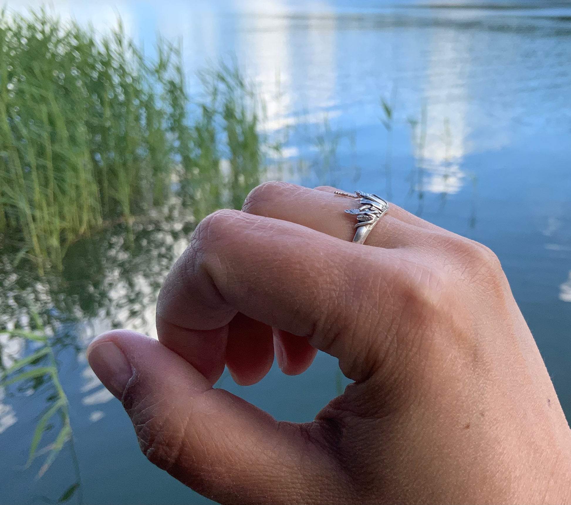 Kaunis ja romanttinen Kaislikko-sormus tuo mieleen kaislojen, tai järviruokojen, havinan tuulessa. Kaikki elementit ja yksityiskohdat on tehty käsin. Hieno kesäinen lahja rannikolla viihtyvälle tai omaksi iloksi.