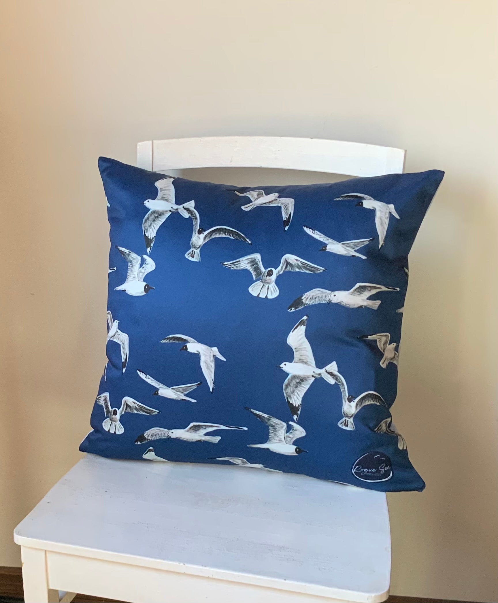 This beautiful and soft seagull pillow with a handpainted design brings fresh coastal vibes to your home, summer house or boat. The fun two-sided design gives you freedom for variation in your decor.