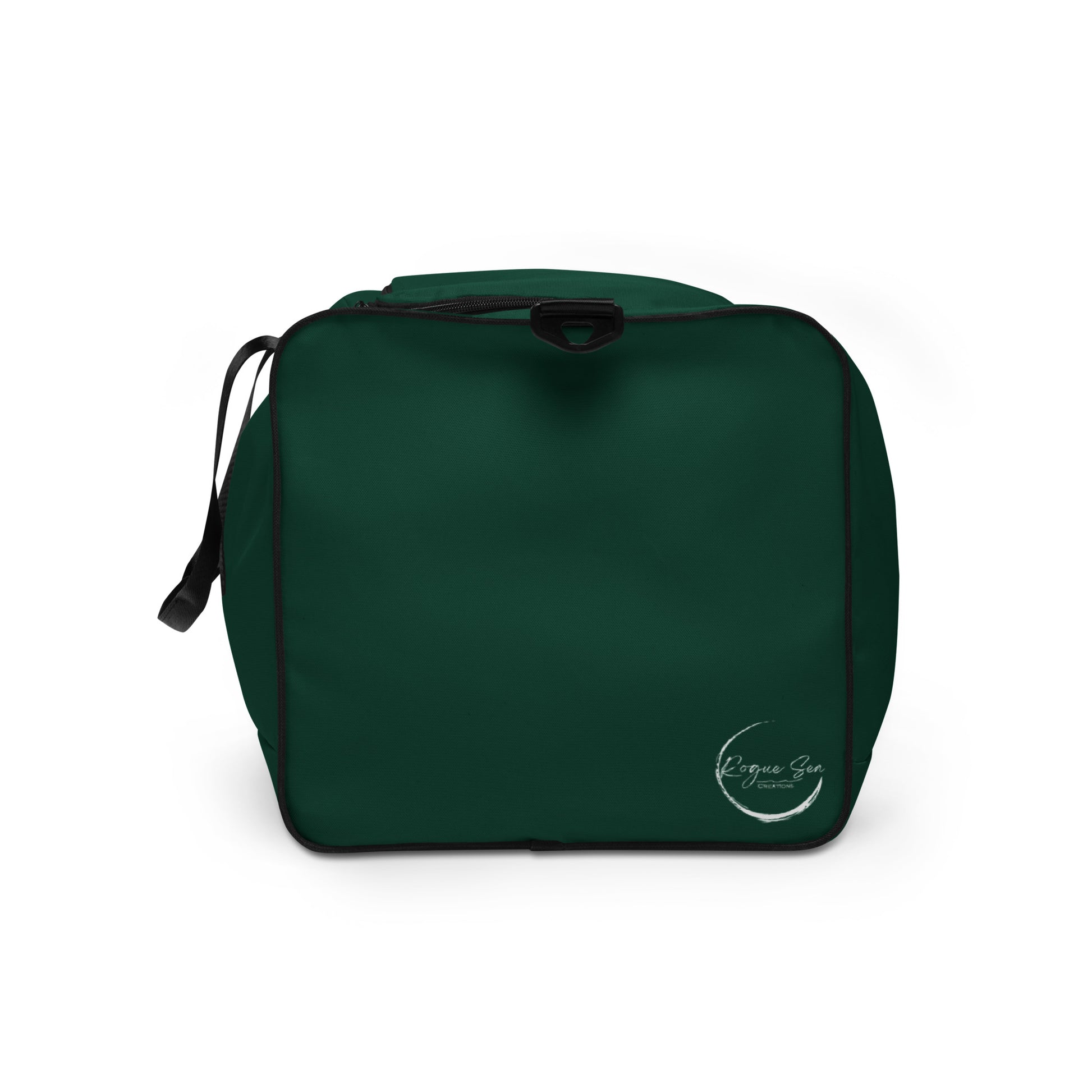 Head to sea (or wherever) in style! This spacious and durable duffel bag will keep everything organized with its multiple pockets, including one with a zipper. Handy mesh pocket on one side. Adjustable padded shoulder strap helps you carry heavier things up to 30 kg. Rogue Sea Creations logo on the side, sailing ship and text.